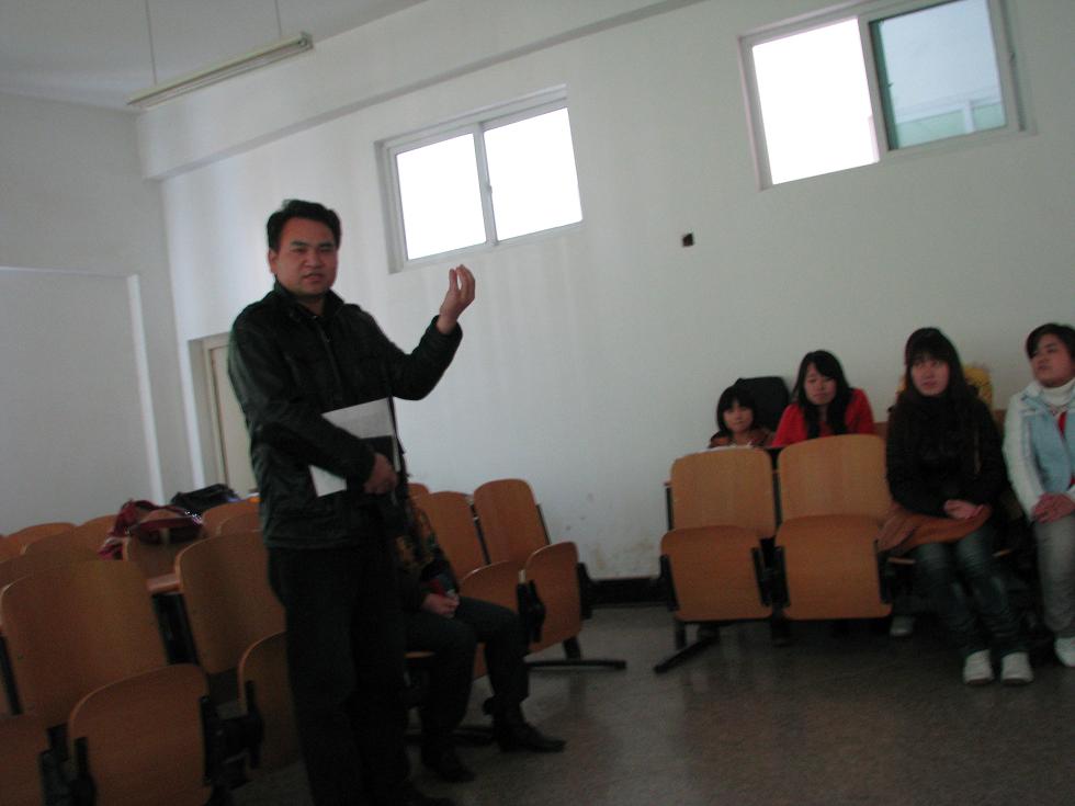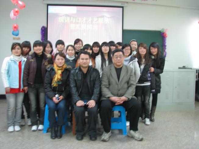 2010年12月22日下午。北综教学楼602多媒体教室。连锁教研室负责管理的文秘班09级同学进行了一场以强化口头表达技能为目的的《演讲与口才》实训技能比赛暨成果汇报演出。商贸学院党总支夏欢书记非常赞赏开展各种形式的实训技能训练活动,熊文杰副院长亲临赛场,代表商贸学院对本次活动的举办表示热烈地祝贺,同时发表了重要讲话,熊院长强调指出,商贸学院高度重视各专业大力开展形式多样的实训技能训练活动,这样的活动对于深化内涵建设、检测教学效果、强化职业技能、打造专业核心竞争力、提高大学生人文素质、培养高素质技能型人才是非常重要的也是不可替代的教学手段。希望今后各专业围绕专业教学积极组织像09文秘班一样的实训技能训练活动,培养“会说话、会动笔、会做事”的高素质技能型人才。
