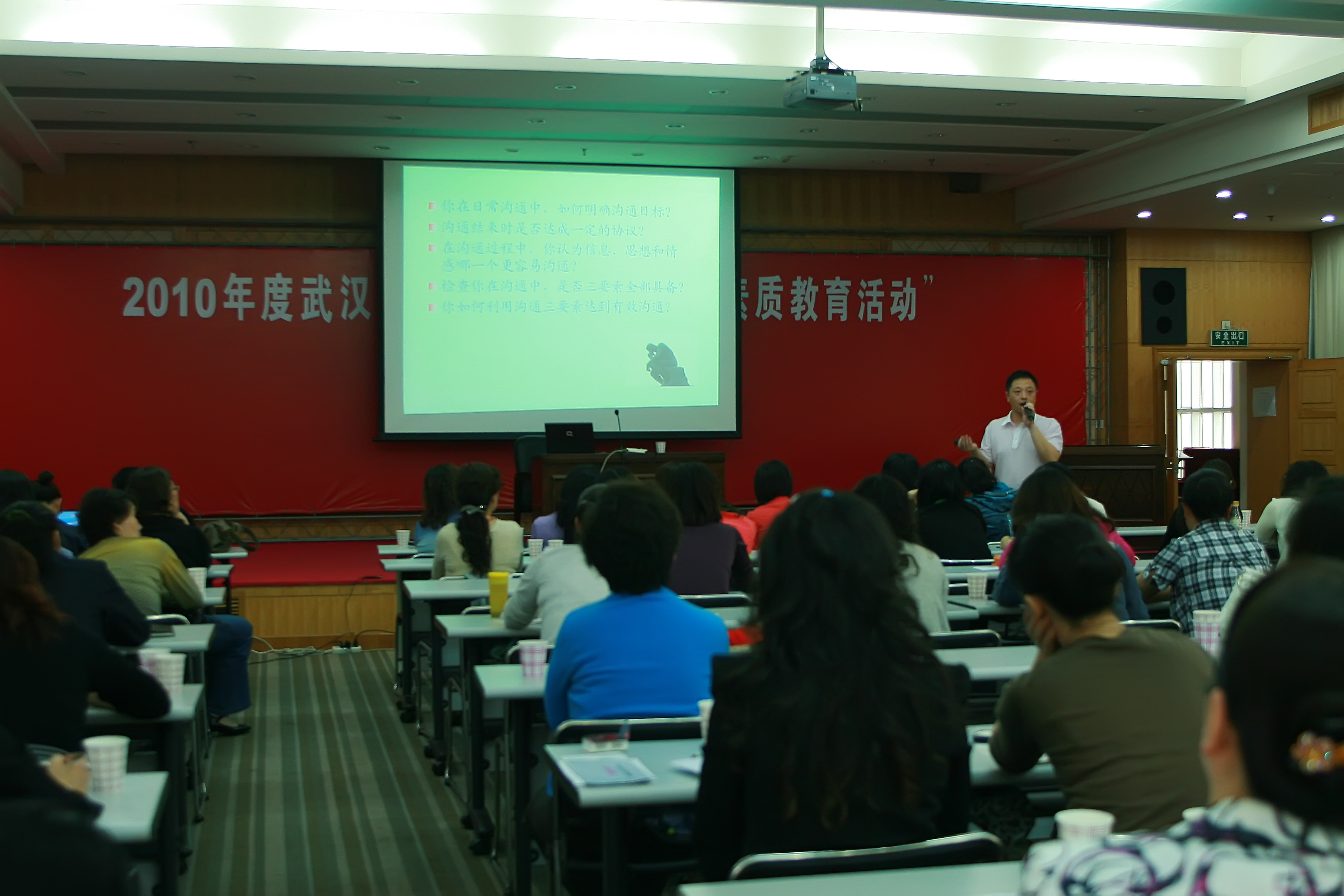 武汉商业服务学院商贸学院易兵老师就“人际沟通技巧”为主题,为全市女职工干部代表们做了精彩的讲座。易老师从沟通学的相关知识介绍入题,生动而详细的向与会代表讲述了沟通能力在人际交往中的作用及使用技巧。易兵老师诙谐幽默充满哲理的语言不断赢得场上阵阵掌声,整个讲座都在互动融洽的气氛中进行。