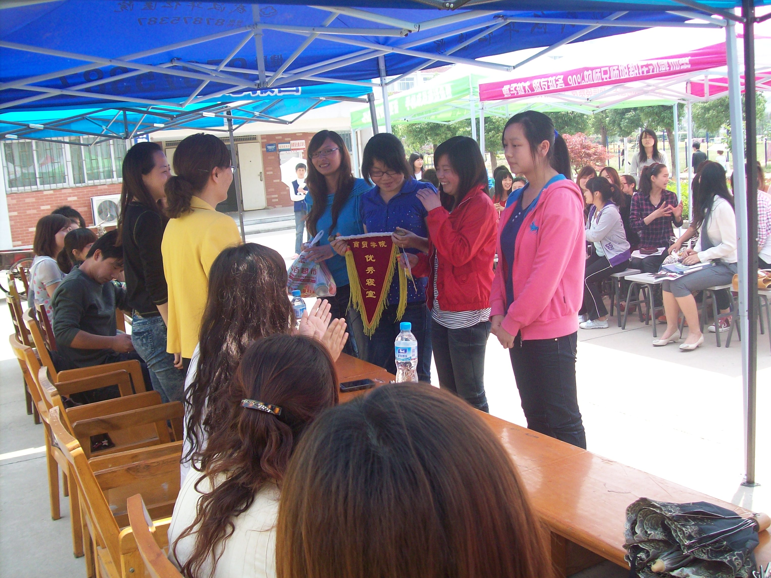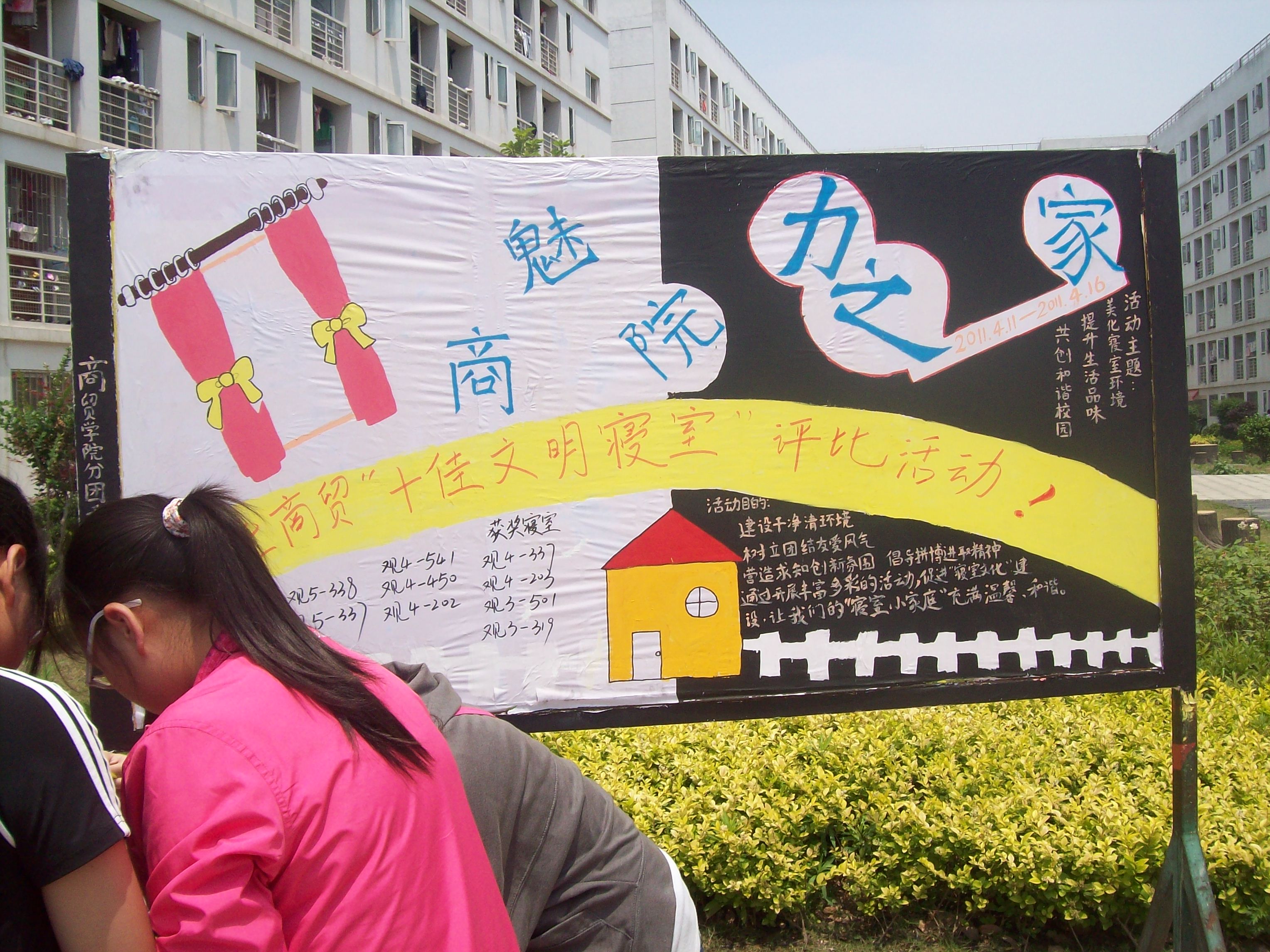 为了营造良好寝室文化氛围,促进校风学风建设,商贸学院学生会生活部在炎炎烈日之下,搭起帐篷于2011年5月26日在北区观3、观4寝室楼下举行了十佳文明寝室的户外颁奖典礼。