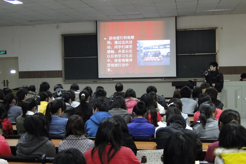 商贸学院在三月深入开展了以“助人为乐情常在,雷锋精神心永存”的主题活动,在校领导的积极支持下,我院分团委学生会以及各班级有序的开展活动。活动月结束后商贸学院评选出了“最佳主题内涵奖、最佳模范奖、最佳创意奖、最佳风尚奖、最佳组织奖、最佳人气奖”以及六位优秀个人。在本次颁奖活动过程中,荣获最佳奖的班级用PPT展示的形式,与大家一起分享班级雷锋活动,最后,分团委书记郭莹老师讲话:我们不但要在“学雷锋”活动中发扬这样的高尚精神,也要在日常生活中,一点一滴,方方面面发扬这样的优良传统,让这种“雷锋精神”永远的流传下去,让中华民族的传统美德发扬光大。让我们从小事做起,从现在做起,让雷锋精神永放光芒,让校园处处盛放雷锋之花!”