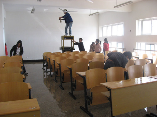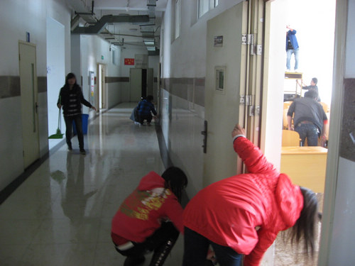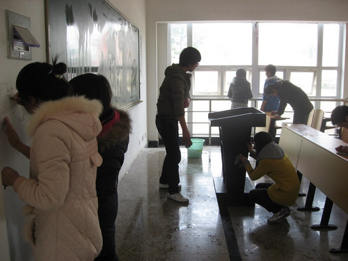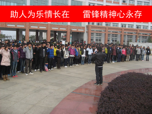 3日下午1时30分,商贸学院学生科在致远广场举行了活动启动仪式。仪式上,黄发爽老师和郑伟同学分别作为老师和学生代表发言,号召同学们不断深入学习雷锋精神,用实际行动践行当代雷锋志愿服务精神。最后,主持人曹承浩带领大家举起右拳庄严地宣誓:“我们愿继承和发扬雷锋精神”。启动仪式结束之后,各班同学开始了对北综教室的全面清扫、整理。活动过程中,校团委副书记江雯老师亲自来到教室检查,她对这次的活动给予了高度评价,并说自己被同学们的付出感动了。北综大楼的管理员说这是他5年值班来唯一的一次大规模的北综大楼清洁美化活动。后勤的阿姨们还向我们表示感谢,说没想到我们还能帮她们分担这么累的活。
