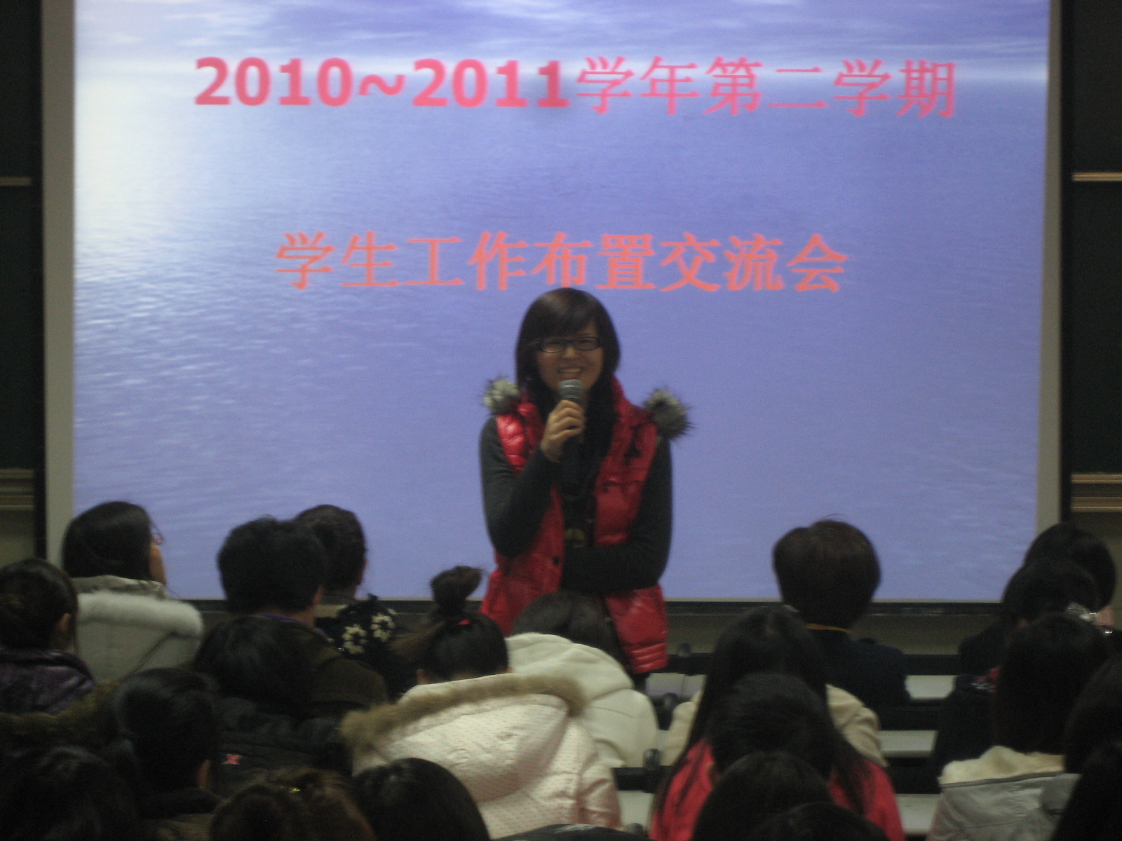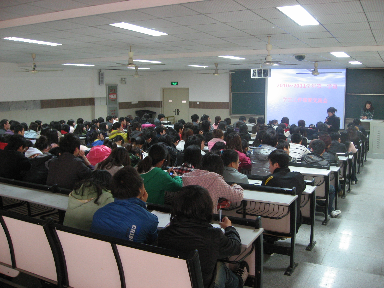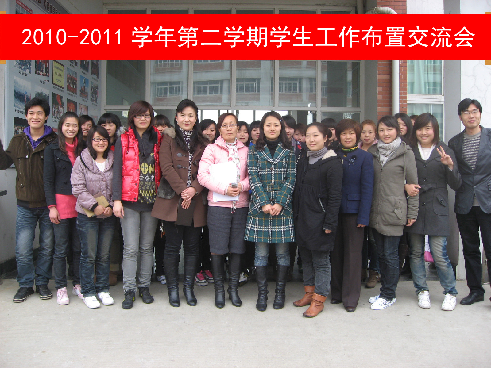 2011年2月25日中午12:40,商贸学院在艺术楼208室召开新学期学生工作布置交流会。商贸学院党委书记夏欢,学生科刘李军科长,郭莹副科长,所有辅导员、团学干部、09、10级班长团支书参加了此次会议。
