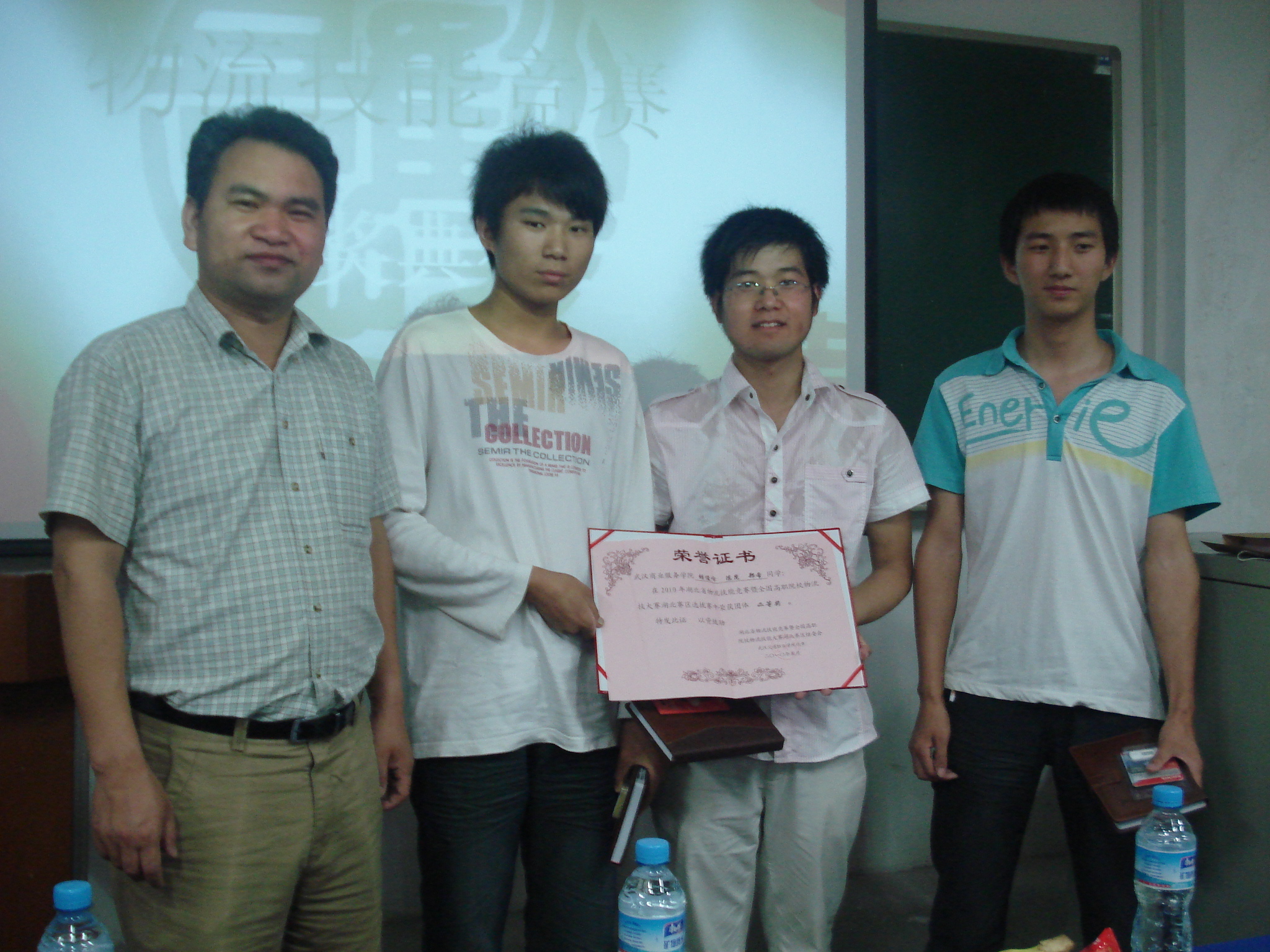 此次“全国物流技能竞赛选拔赛”在武汉交通职业技术学院举行,qy球友会千亿官网08级物流管理的三位参赛选手(胡峻峰、郑希、陈昆)荣获了“二等奖”。今天的颁奖典礼,三位获奖同学都到场,商贸学院副院长熊文杰老师、物流教研室主任易兵老师、市场营销张教授也参加了此次的活动。