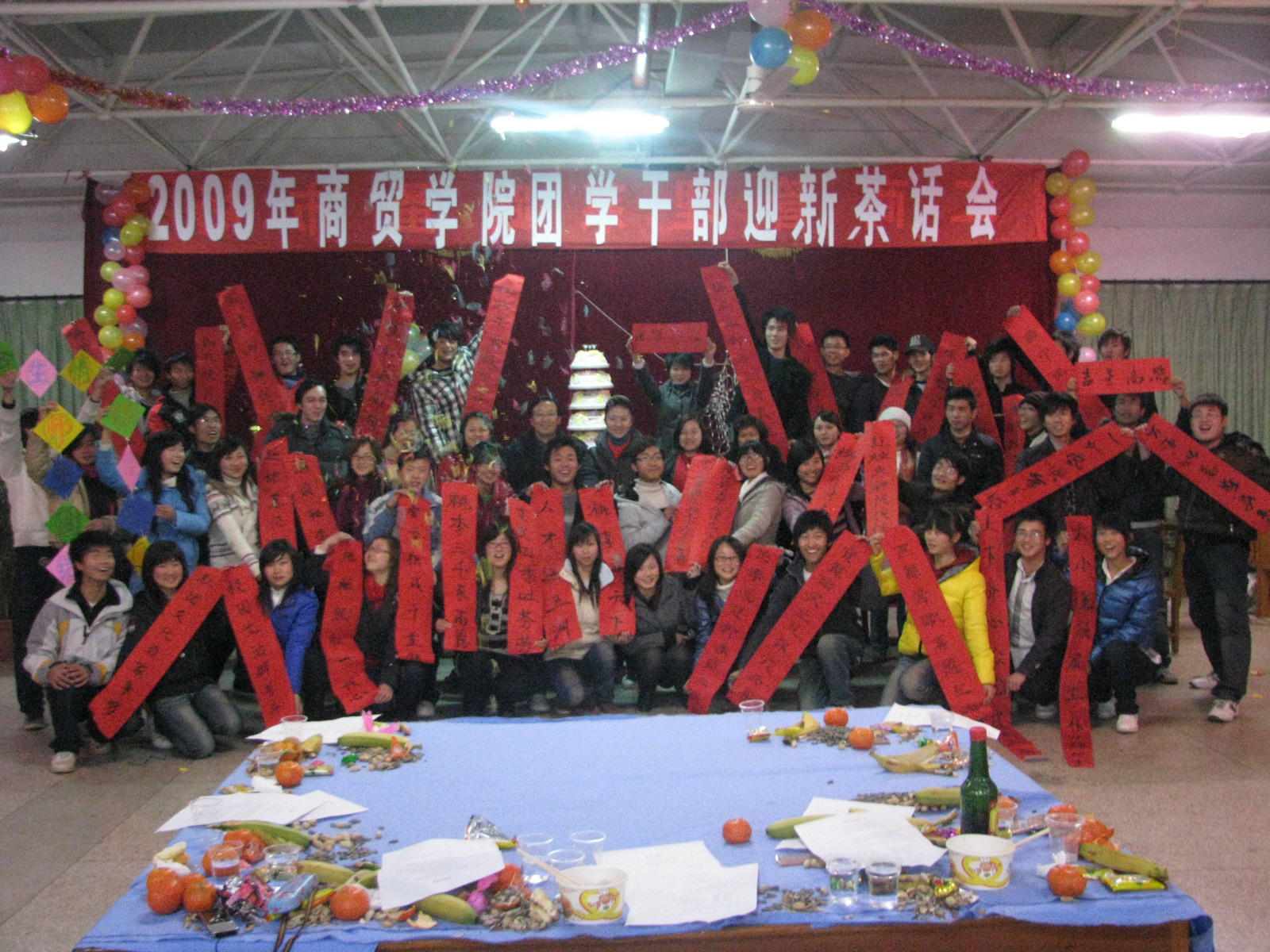 为了欢庆元旦同时进一步加强老师及团学干部的感情交流,商贸学院于12月30日在商贸楼三楼举办了一场由学生会文艺部承办的茶话会。