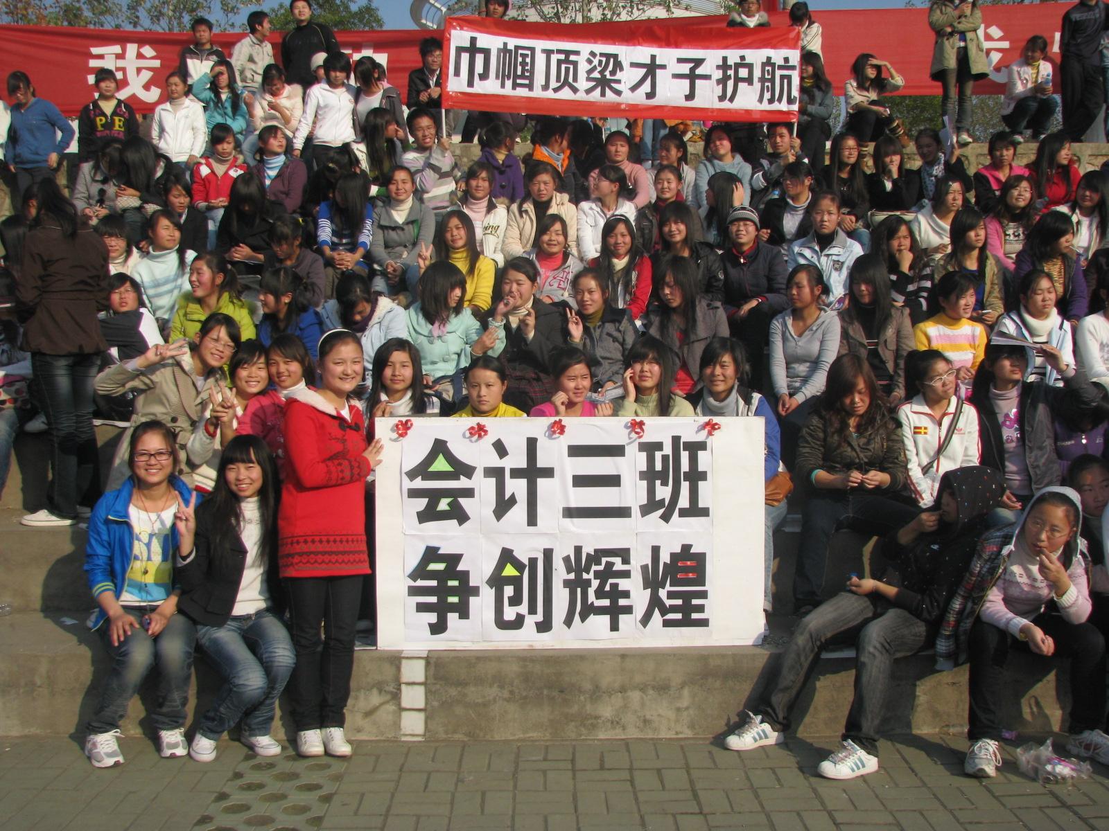 本次运动会持续了两天。在开幕式时商贸学院的两个方阵迈着整齐的步伐,雄赳赳气昂昂地向全校师生展示着商贸风采。主席台右边的看台上商贸学院大一各班的同学们为运动健儿们加油呐喊着。其中商贸学院09级会计(3)班的同学们别出心裁的毛笔字“巾帼顶梁才子护航”、“会计三班争创辉煌”的加油横幅在运动场上显得格外醒目。运动场上各项比赛紧张而有序的进行着,整个运动场上加油声、鼓声、呐喊声响成一片。