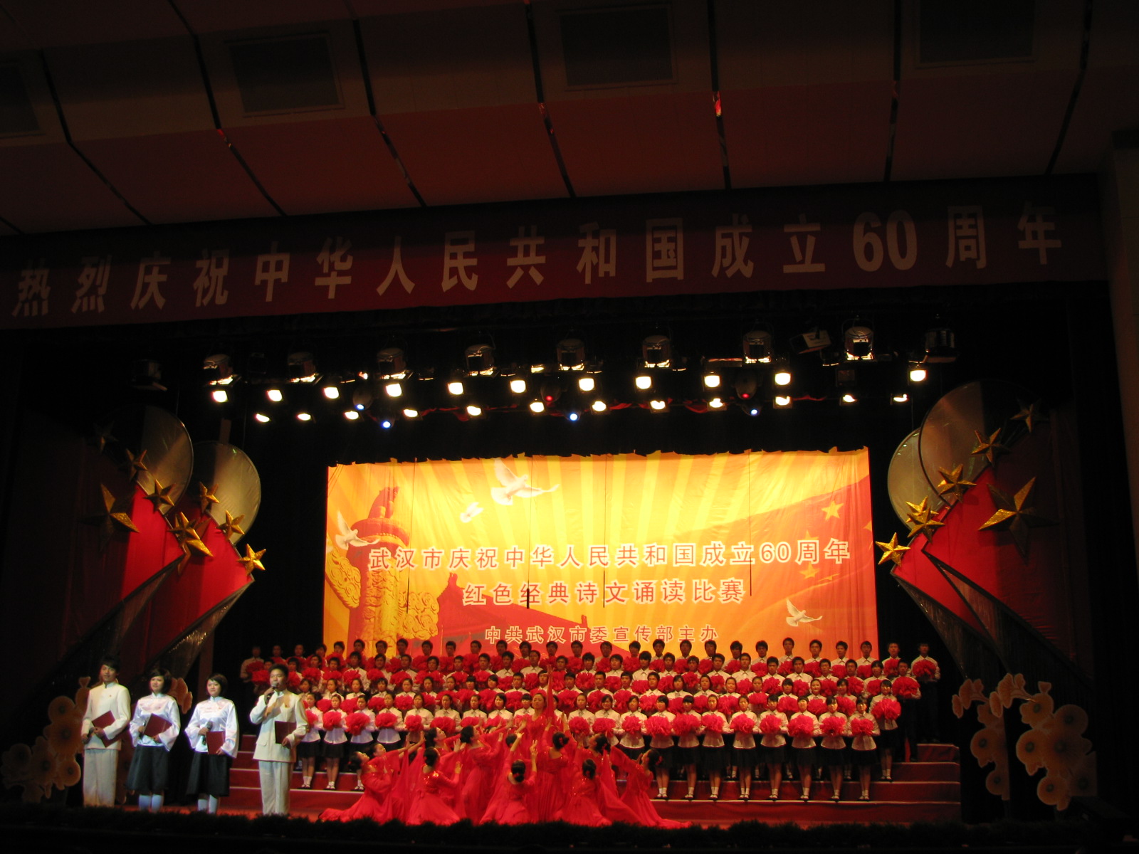 下午2:30诵读比赛正式开始。出席本次诵读比赛的市领导有武汉经济开发区宣传部部长杨开华、武汉市委常委宣传部部长朱毅、武汉市人大副主任刘家栋以及武汉市政协秘书长肖志钢等领导。在观赏了江夏区、青山区、武昌区等等地区精彩的伴舞表演和抑扬顿挫的吟咏之后,武汉经济开发区的参赛作品—由qy球友会千亿官网124名学生表演的诵读《放声歌唱》登场了。随着伴乐响起,婀娜多姿的舞者翩翩起舞,曼妙而恢宏。朗诵者吟咏之间,吐纳珠玉之声;眉睫之前,卷舒风云之色。诵读完毕,听众的掌声如雷,经久不息。表演者散场时许多听众仍在激情难抑中互相感叹。
