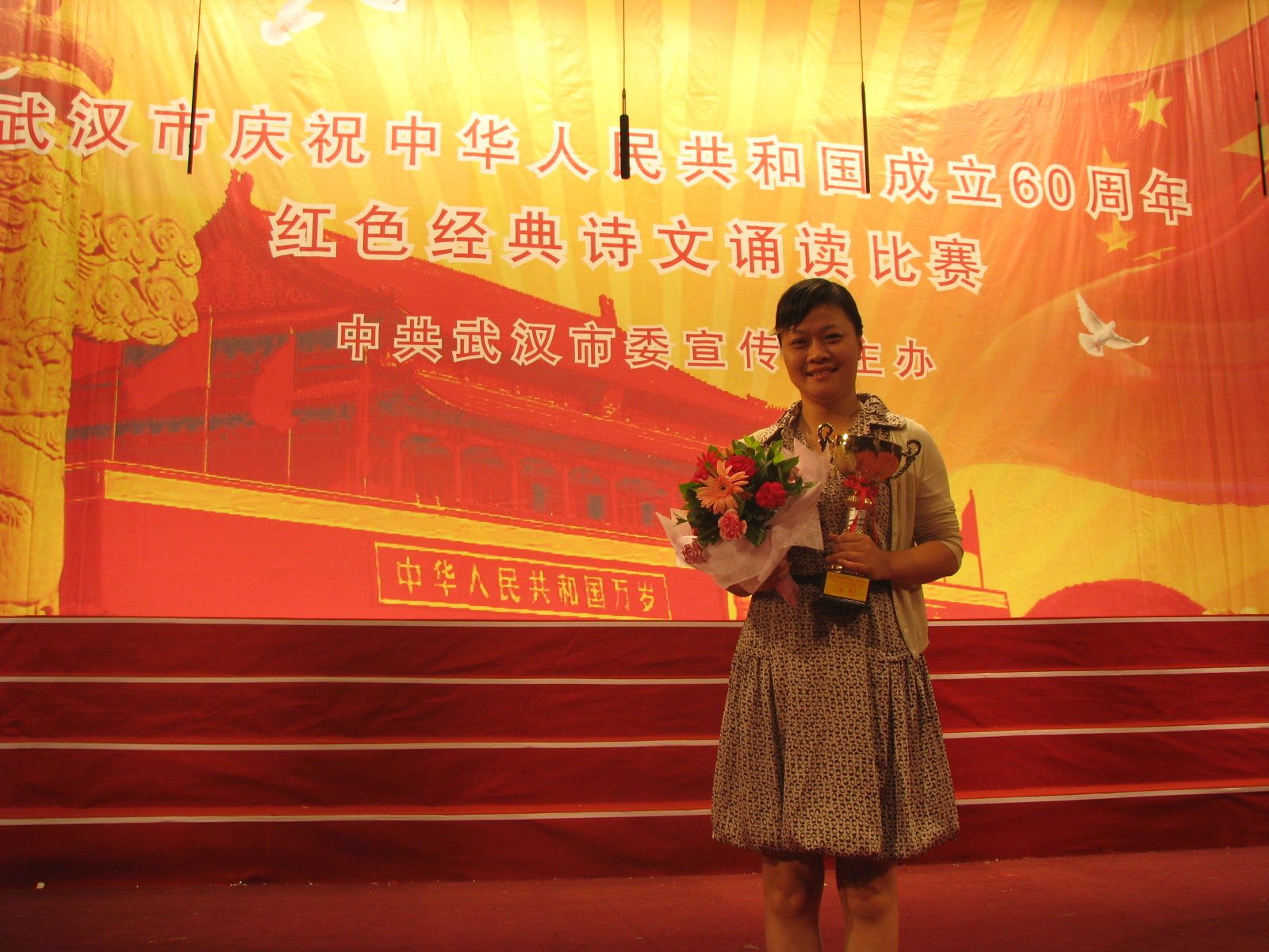 9月27日由中共武汉市委宣传部主办的红色经典诗文诵读比赛现场,qy球友会千亿官网商贸学院代表武汉经济技术开发区参加本次大赛并荣获金奖。