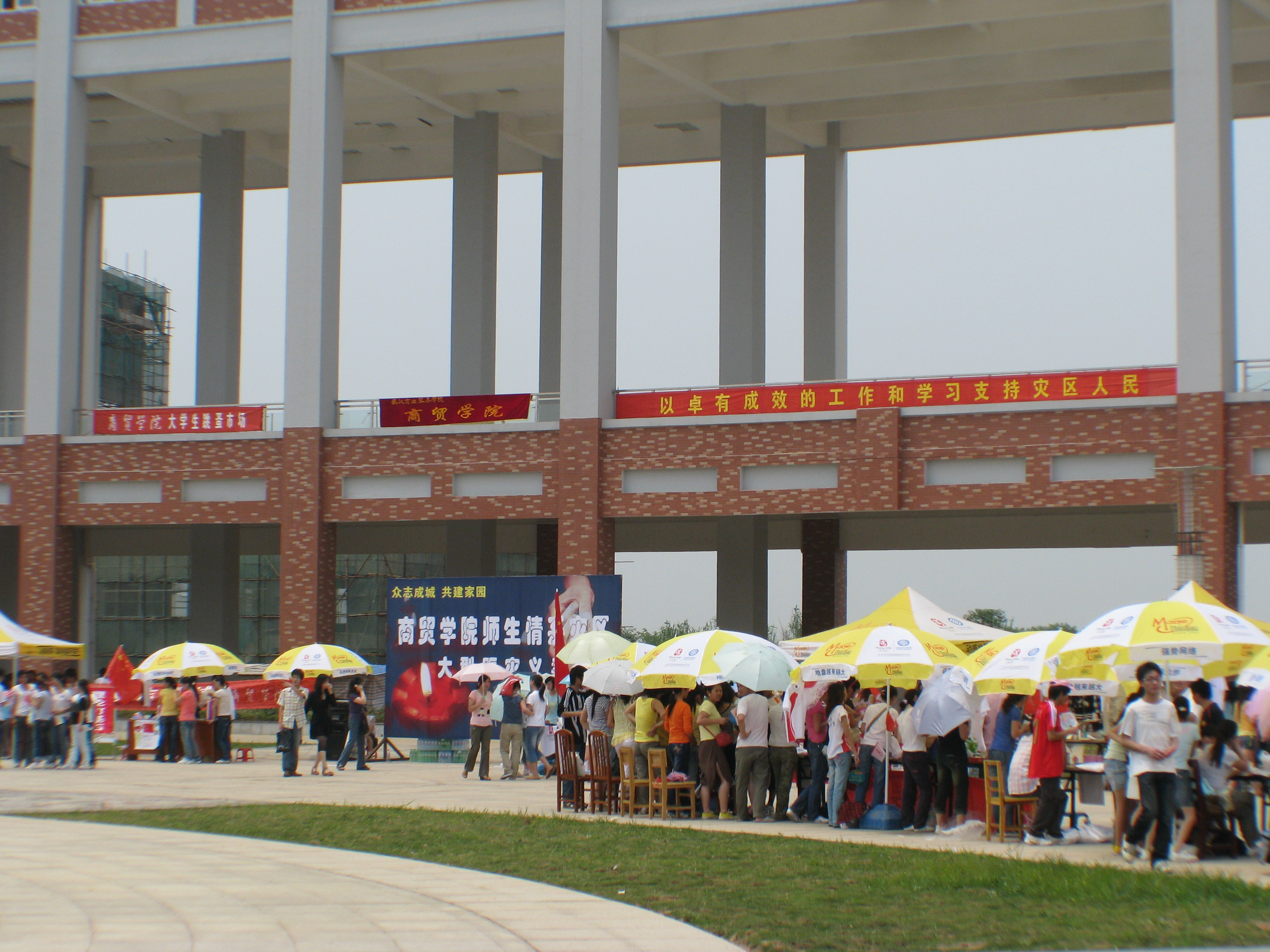 情系灾区,让爱蔓延,由我院组织的跳骚市场抗震救灾大型义卖活动于2008年5月22日中午在学校北区广场举行。