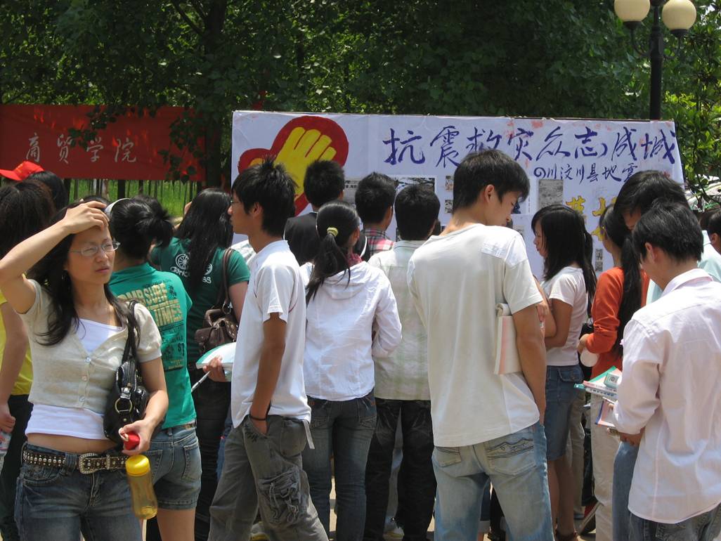 我院青年志愿者协会在南区教学楼前进行了支援灾区的募捐活动,共募捐人民币7000余元。