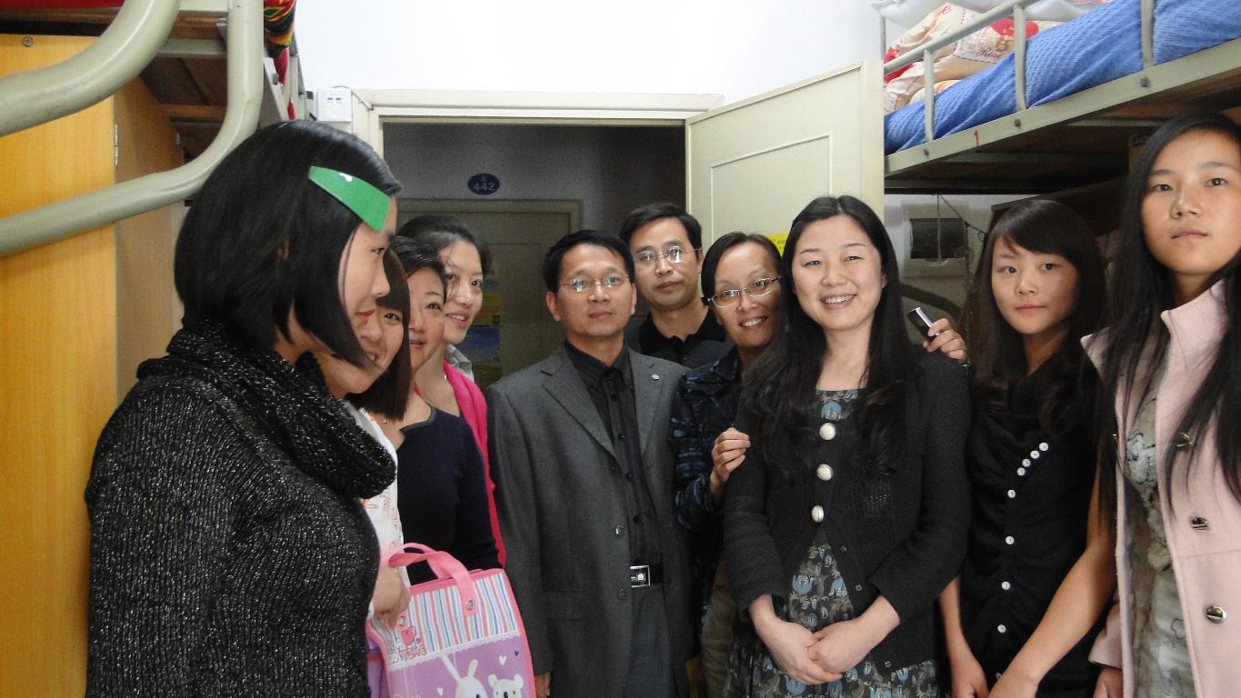 学生与老师之间交谈得很愉快,欢乐的笑声充溢着整个寝室。尽管时间紧迫,老师给学生们进行了详细的指导,同时,也希望学生们能利用课余时间去与老师交流。刘萌副院长还给学生们提出希望,在校期间要读好书,把有字书与无字书相结合,专业理论学习和实践相结合。