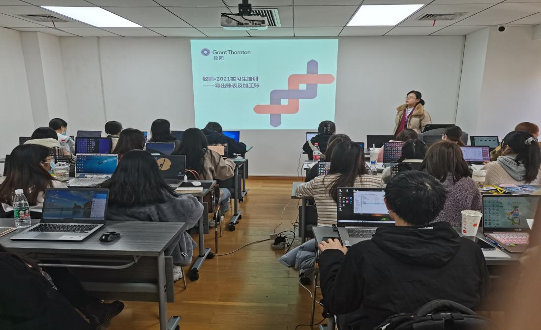 第一天的课程开始,管理合伙人金鑫致辞,对于同学们选择前来致同实习表示欢迎,并介绍了致同事务所武汉分所的发展情况,他强调了系统性学习、自主学习、保持沟通及时反馈以及守时精神的重要性,告诫同学们要不断学习提升专业技能并培养良好的工作习惯。下午项目经理刘佳君结合工作实务一步一步教大家应用审计软件加工账表,再让大家自己动手操作,在此过程中及时为大家答疑解惑直至同学们均能独立完成加工账的制作,同学们均学习到了全新的数据处理工具应用方法,学习积极性很高。