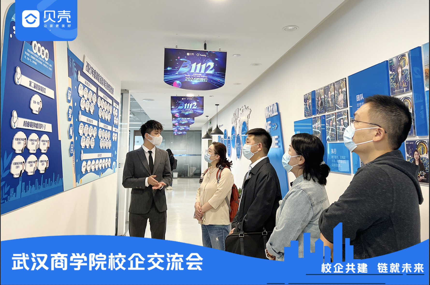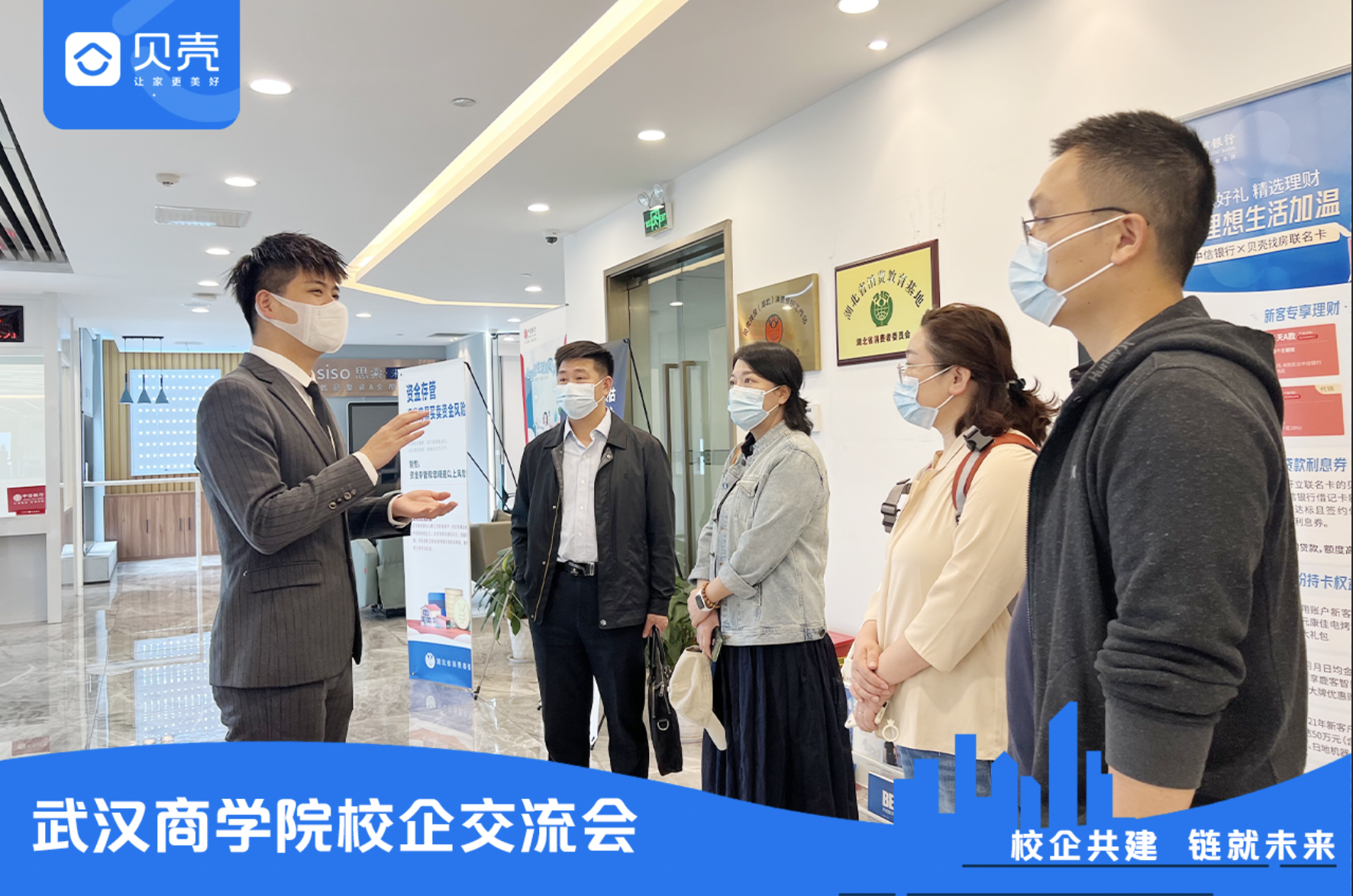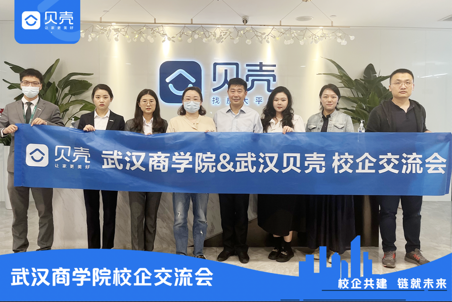2022年5月9日上午,qy球友会千亿官网陈继元院长带队,与副院长赵杨、教学管理办公室主任张勤康、零售业管理专业负责人夏黎一行赴武汉贝壳公司总部进行访企脱岗调研。