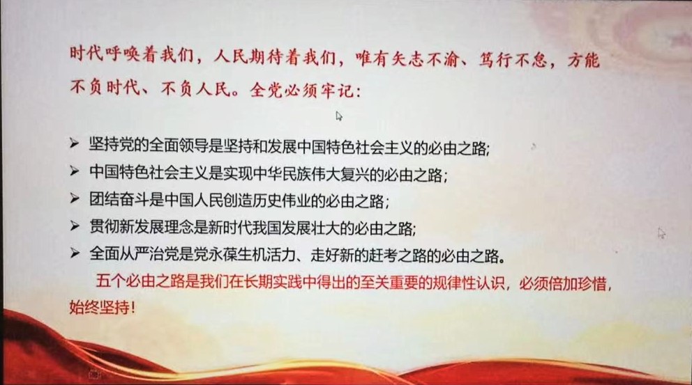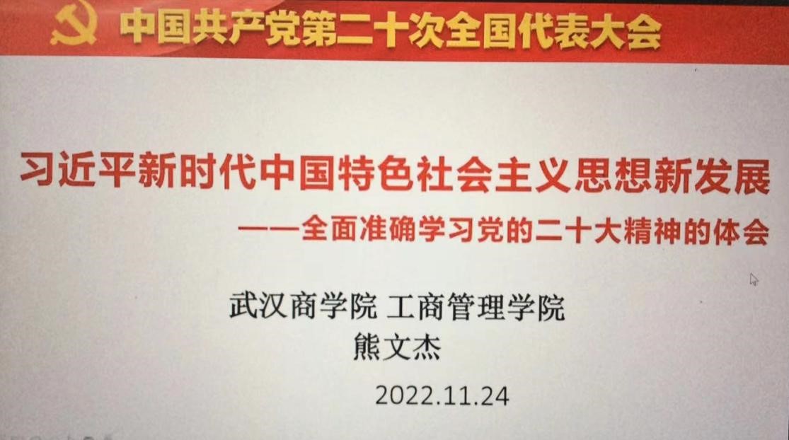 会议的最后,qy球友会千亿官网党委书记熊文杰教授讲授党课,分享全面准确学习党的二十大精神的体会,并从十五个方面讲述二十大的学习内容,思想深邃,内涵丰富,并引用习近平总书记提出的“五个必由之路”,准确地讲述二十大学习内容,让大家更加深刻地理解和学习二十大精神内涵。加深大家对党的二十大的学习和认识,提倡全体师生学习二十大精神,坚定听党话、跟党走的信念和决心。