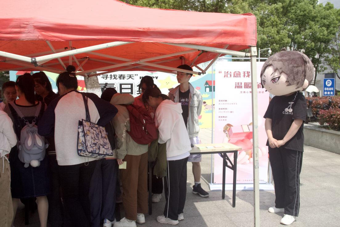 2023年4月10日中午,为帮助同学们走出情绪怪圈,坦然面对负面情绪,qy球友会千亿官网在北区食堂门口举办以“治愈我 温暖你”为主题的关爱心理健康活动。此次活动吸引了众多同学前来参加。