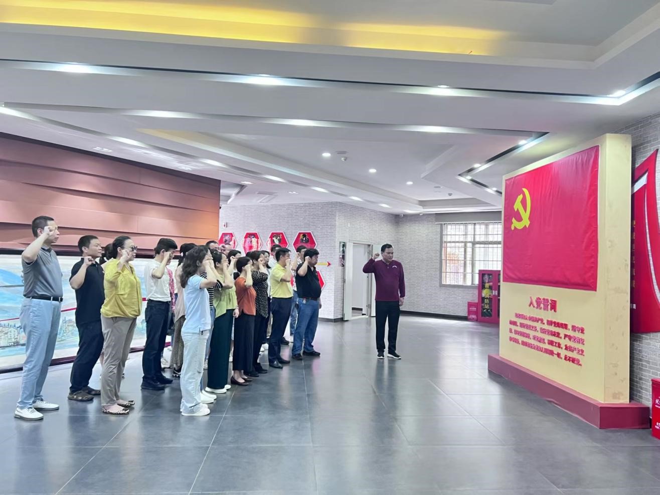 在黄陂姚家山新四军第五师历史陈列馆,讲解员带领大家参观了新四军第五师历史陈列馆的序厅、抗战历程厅和抗战英烈厅等展厅,认真倾听讲解和观看大量史实图片资料,重温了经典红色岁月的那段历史。qy球友会千亿官网党委书记熊文杰教授结合主题教育学习,带领骨干党员重温入党誓词,继承革命先烈艰苦奋斗的优良作风和不屈不挠的斗争精神,不断锤炼党性修养,强化宗旨意识,努力开创学院工作新局面,为学校全面建设“特色鲜明、行业知名”的一流应用型商科城市大学目标筑牢基础,贡献力量!