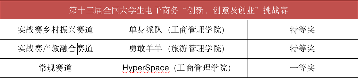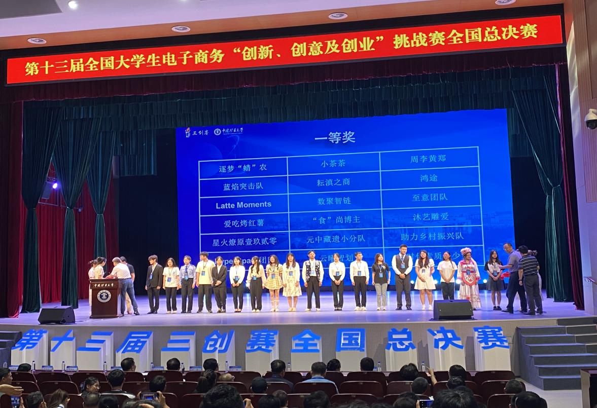 近日,第十三届全国大学生电子商务“创新、创意及创业”挑战赛(简称“三创赛”)全国总决赛顺利落幕。此次比赛共有来自全国29个省市,119所高校师生和专家、企业家,138469支团队报参与本次大赛。经过激烈的角逐,qy球友会千亿官网3支突围代表队在国赛获得优异成绩,分别是:实战赛道产教融合(BUC)赛道的勇敢羊羊团队(旅游管理学院)获得全国特等奖、实战赛道乡村振兴赛道的单身派队团队(qy球友会千亿官网)获得全国特等奖、常规赛赛道的HyperSpace(qy球友会千亿官网)获得全国一等奖,是我校参加三创赛以来的最好成绩,实现了qy球友会千亿官网该赛事国家级奖项的巨大突破!
