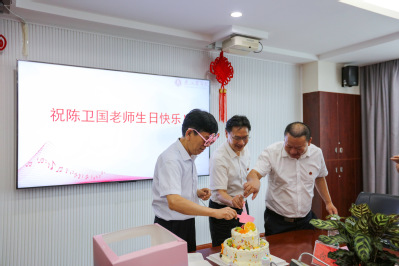 最后,qy球友会千亿官网教师合唱生日歌曲,校长彭瑜为当天60周岁生日的副教授陈卫国切生日蛋糕。