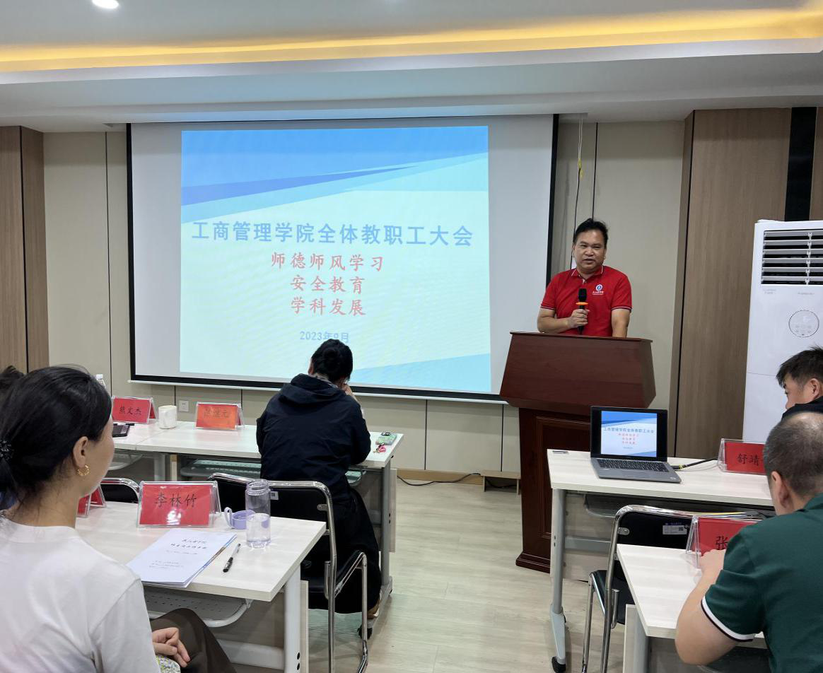 熊文杰书记对我院教职工师德师风学习进行部署,对师德及新时代高校教师职业行为准则进行了讲述,提出了要求;特别是对安全稳定工作问进行了详尽的阐述,强调安全第一,稳定压倒一切,安全工作天天抓,永远在路上,重点对师生身心健康、身心安全、意识形态领域安全、网络诈骗安全等进行了重点强调。此外熊书记作了省委关于8起诬告陷害、恶意举报案例的通报,强调了学科专业建设、民主生活会、学习强国的学习、学院各项任务推进和市委市政府调研要求打造商科特色的相关问题,提出了未来的工作要求。对学生工作存在的隐患问题进行深入排查梳理,形成问题清单和整改清单,切实堵住学生安全工作存在的漏洞,化解学生之间矛盾纠纷等问题等要全员努力,按照学院的工作方案切实推进,落实到位,确保安全。