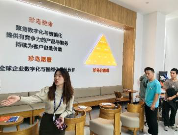 走进珍岛公司大厅,人力资源部刘艳双经理首先给大家介绍了珍岛集团的企业价值观和文化墙,同学们看到了珍岛合作过的品牌企业和种种行业荣誉,让大家对珍岛集团发展背景有了客观真实的认知。
