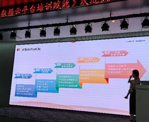接着,我们来到公司培训大厅,珍岛集团产教融合总监张彬给大家介绍了该集团智能营销云平台在提升学生数字营销技能方面的卓越功能,并请技术老师郑小满为大家进行了在线数字营销实战训练,让大家充分了解数字营销的工作内容、工作流程和平台操作的基本功能使用方法。