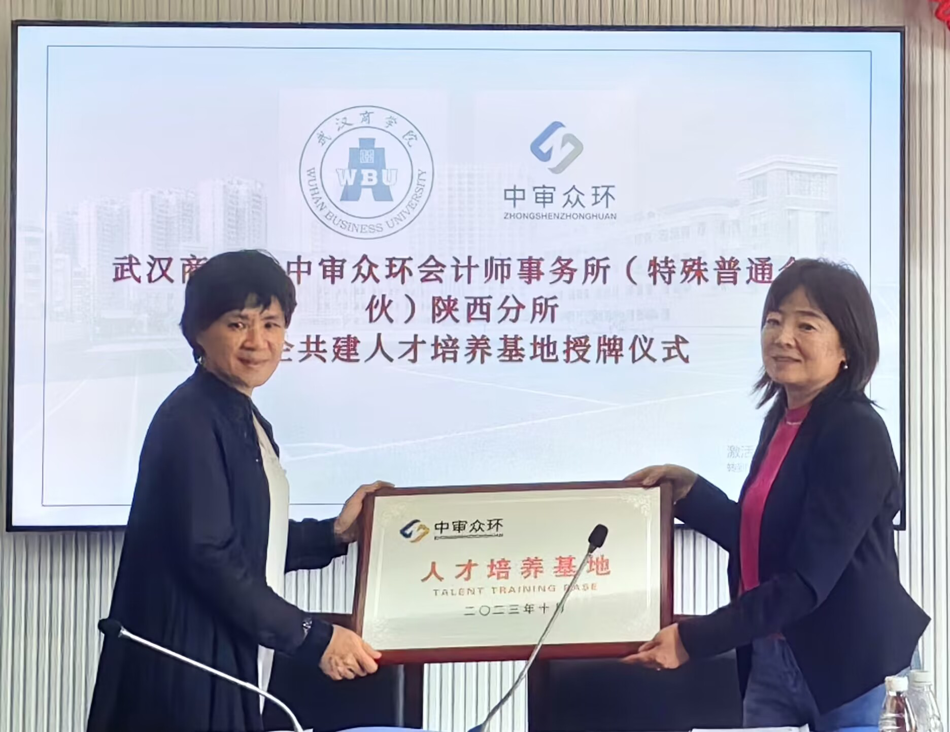 2023年10月31日下午13:00,工商管理学院与中审众环会计师事务所(特殊普通合伙)陕西分所校企共建人才培养基地授牌仪式于qy球友会千亿官网301会议室成功举行。qy球友会千亿官网,qy球友会千亿官网院长陈继元、审计系主任刘婕和审计系专业带头人陶燕,中审众环会计师事务所(特殊普通合伙)陕西分所所长黄丽琼、人力资源主管刘晓慧和培训经理刘森参与授牌仪式。
