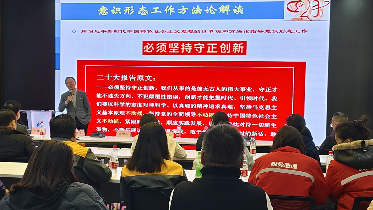 首先,由宫世成书记发表讲话。他强调,各位党员同志应当加强品德修养,不断培养高级的操心和淳朴的情感。要提升能力本领,更要为国争光,为民造福;更要凭借个人担当,为促进高质量发展、推动高水平创新、创造高品质生活,贡献青春力量;要砥砺奋斗,奋力书写青春无悔的新篇章。而后,qy球友会千亿官网党委书记熊文杰教授讲解主题为“新时代中国特色社会主义思想新发展”专题课程。熊文杰教授首先指出,党的二十大确立了新时代新征程、全面建设社会主义现代化国家团结奋斗的宏伟纲领,随后从二十大会议上习总书记特别强调的三个务必切入,指出要牢记总书记“务必不忘初心,牢记使命,务必谦虚谨慎,辛苦奋斗,务必敢于斗争,善于斗争”的指示。接着从党的伟大变革方面,联系当今国际局势与国家发展大势,以qy球友会千亿官网党建工作为例,强调要加强党建引领,把握五项基本原则,走好新时代赶考之路。