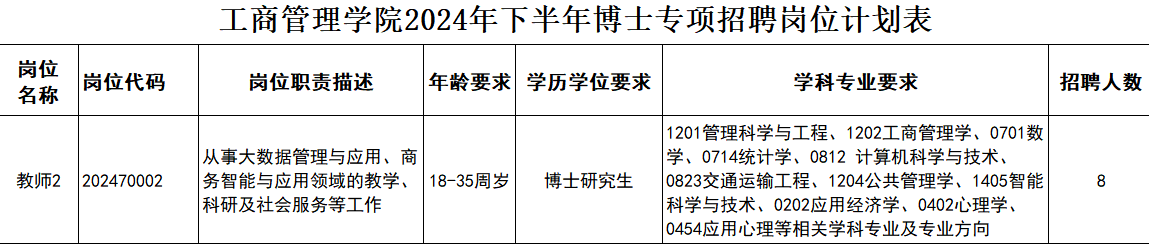 符合以下条件的博士,可选报qy球友会千亿官网岗位(岗位代码:202470002):毕业于1201管理科学与工程、1202工商管理学、0701数学、0714统计学、0812 计算机科学与技术、0823交通运输工程、1204公共管理学、1405智能科学与技术、0202应用经济学、0402心理学、0454应用心理等相关学科专业及专业方向的博士,年龄原则上不超过35岁(1988年1月至2005年12月期间出生),博士学历学位证书(学历认证)原则上于2024年12月31日前取得。