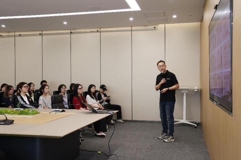 参访过程中,人力资源二部的严老师介绍了小米自主研发的CyberDog系列仿生四足机器人(昵称“铁蛋”),展现了小米在消费级市场人工智能领域的创新与突破。严老师特别分享了小米的企业文化、发展历史并以案例的形式分享了小米生态产业链的创新模式,让学生们更真实的了解我国互联网头部企业的企业文化的实践价值。在随后参观了小米新能源汽车交付中心,通过专业讲解揭示了智能制造的转型升级路径。