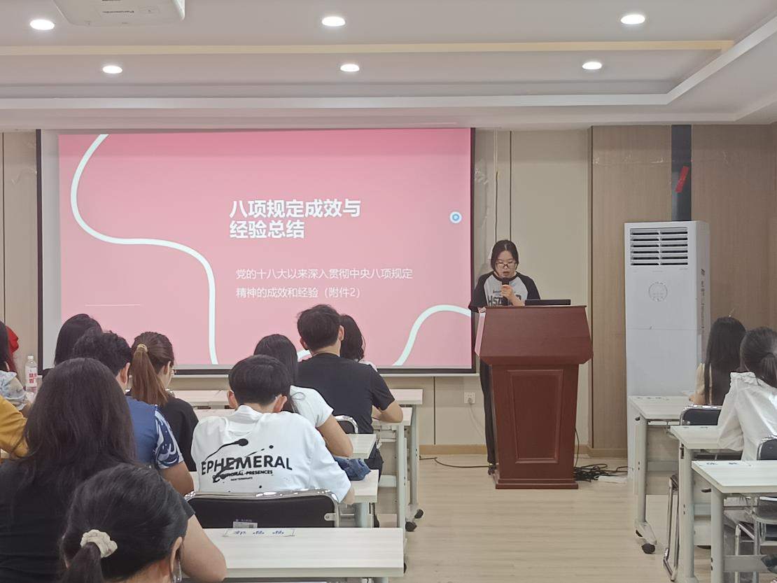 6月11日中午,qy球友会千亿官网学生一、二支部联合开展6月份支部主题党日活动。本次会议聚焦“深入贯彻中央八项规定精神”开展专题学习。