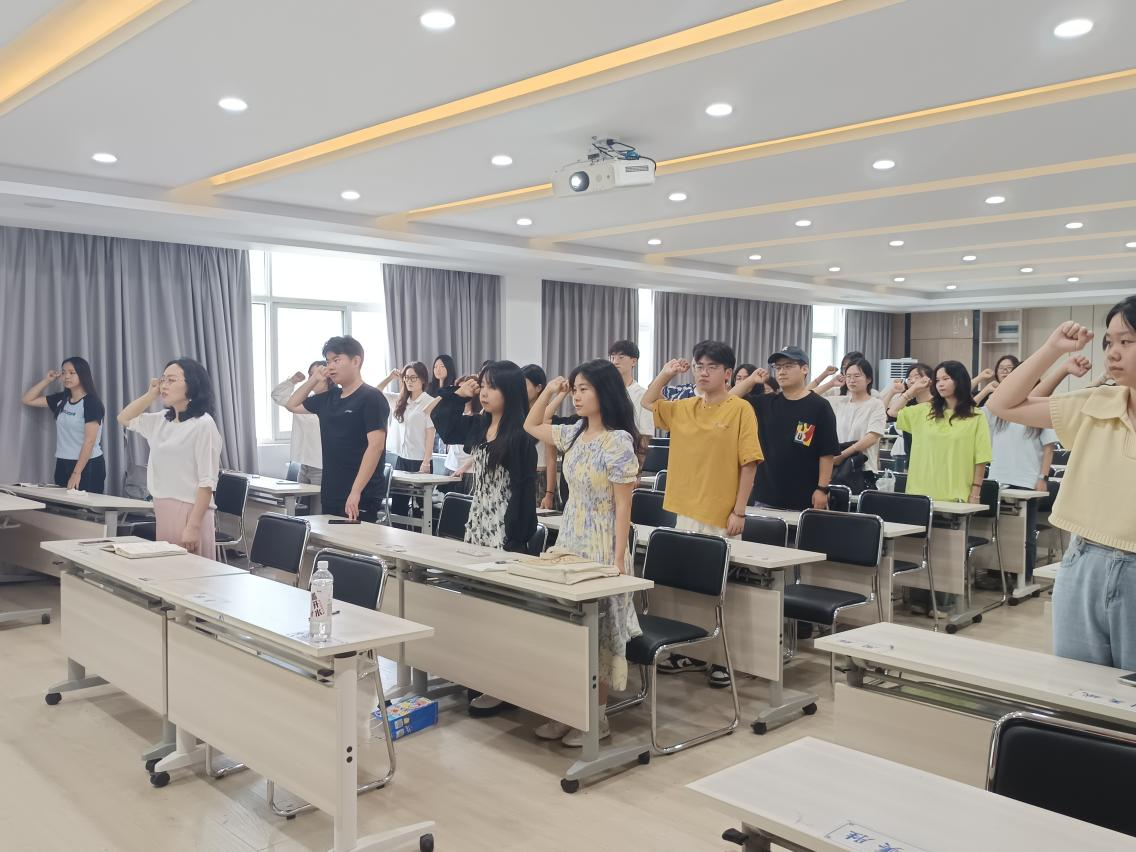 在组织部部长袁越的带领下,全体学生党员重温入党誓词